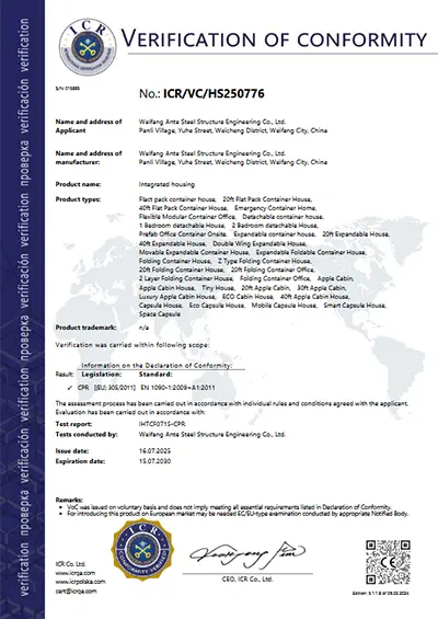 Nous avons construit 120 unités Apple Cabin au Canada en 2024, exporté 500 unités à plat de contenant de pack vers la Russie en 2024 et construit 800 unités Refuge House a coopéré avec le gouvernement irakien en 2023, construit une maison de conteneurs à plat de 50 unités au Royaume-Uni.